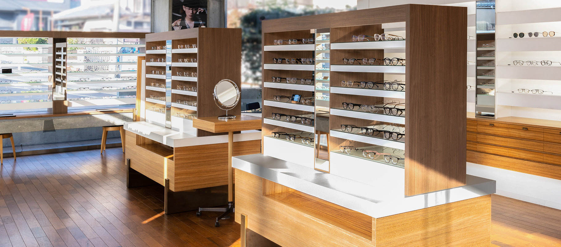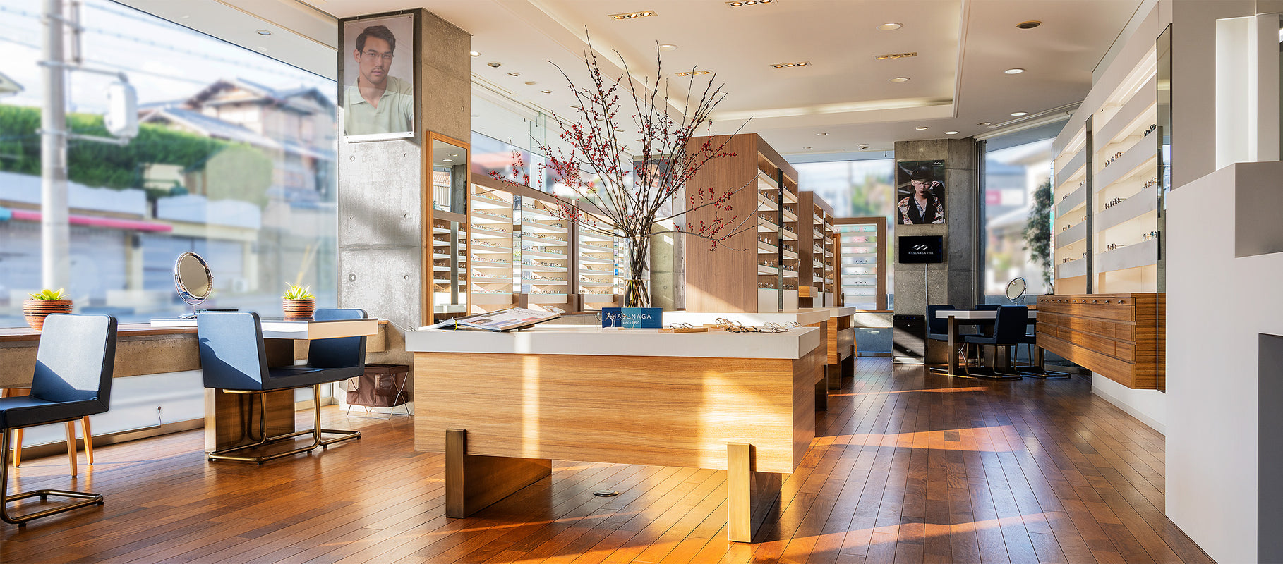 古き良き歴史ある古都奈良の学園前に2013年にオープンしました。閑静な住宅街の一角に建ち、ガラス張りのとても開放感があり光溢れる空間になっています。また、店内はあえてコンクリートむき出しの部分を多く残し近代的でモダンな雰囲気を表現。落ち着いた店内で心ゆくまでゆっくりと増永眼鏡の製品を1本1本堪能していただけます。