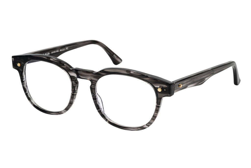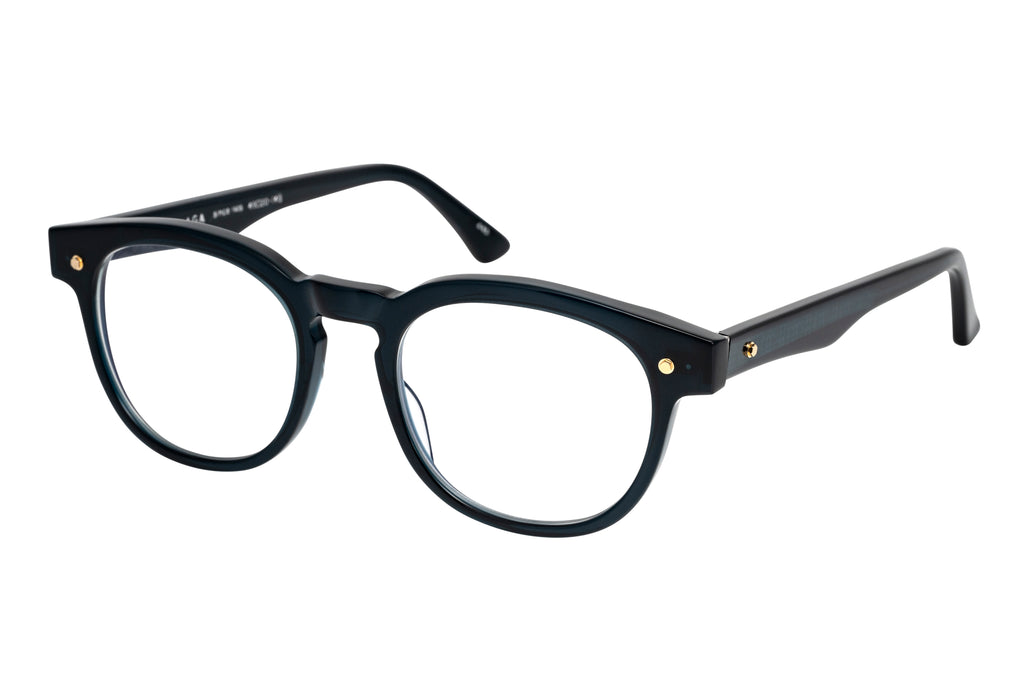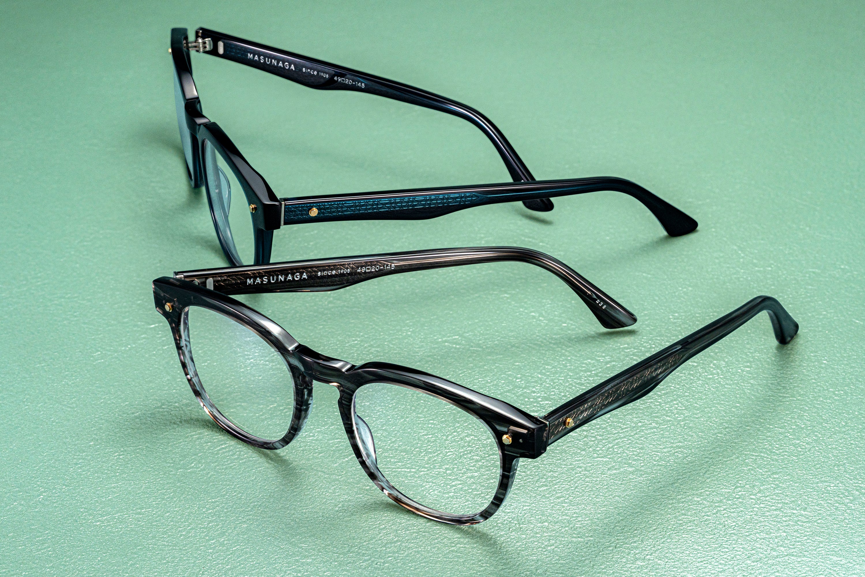 オーソドックスなウェリントシェイプに、ワッシャーと六角ネジのアイコンを絶妙なバランスで添えた「光輝105」から新たに2色が加わります。#38 OLIVEはブラックベースのササ柄。アセテートの奥に覗くシルバーのテンプルコアが絶妙に調和し上質な渋みを演出します。#45 NAVYは濃度が高いクリアネイビー。光を受けると鮮やかなブルーが静かに姿をあらわす深みのある魅力的なカラーです。