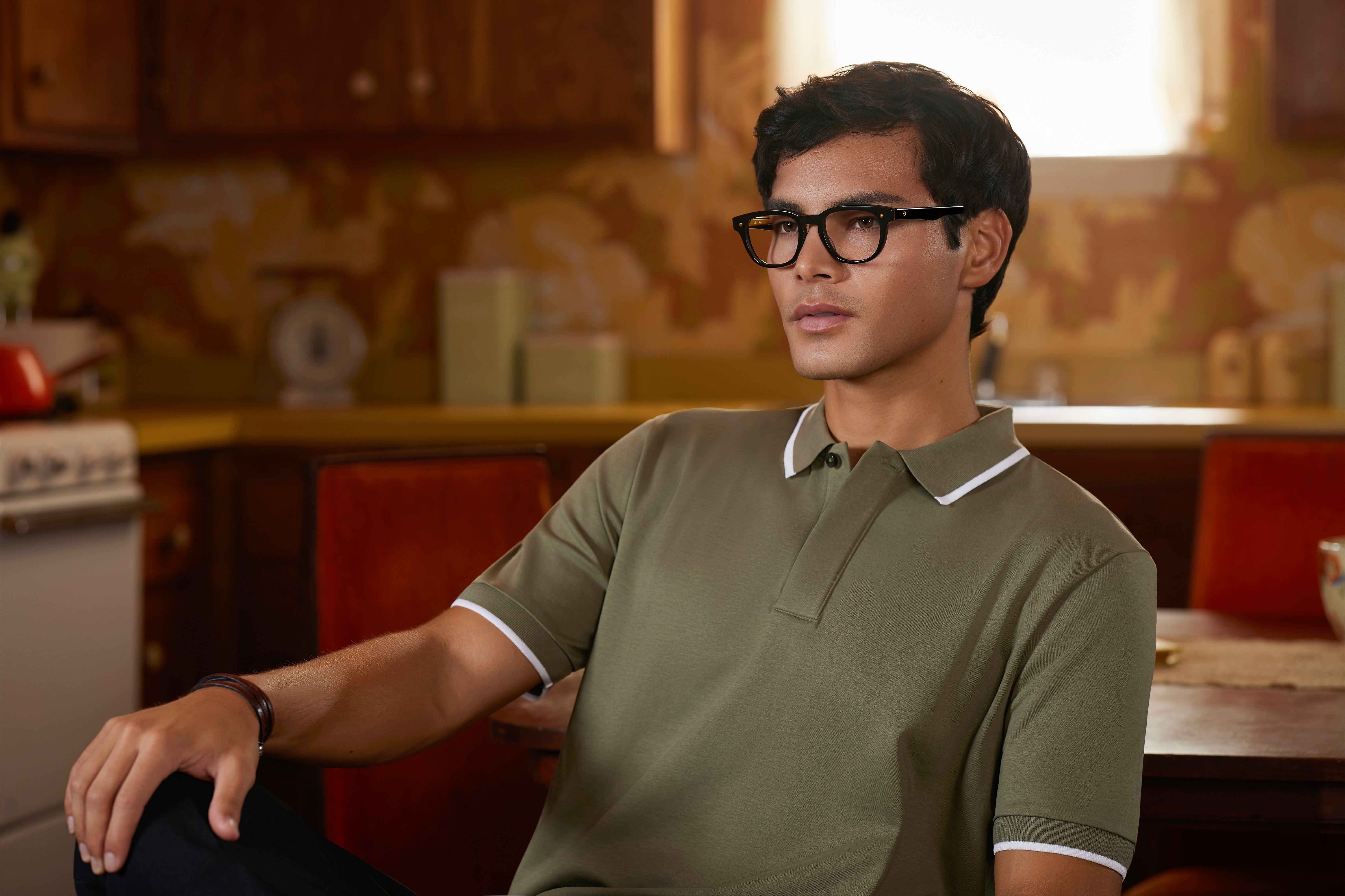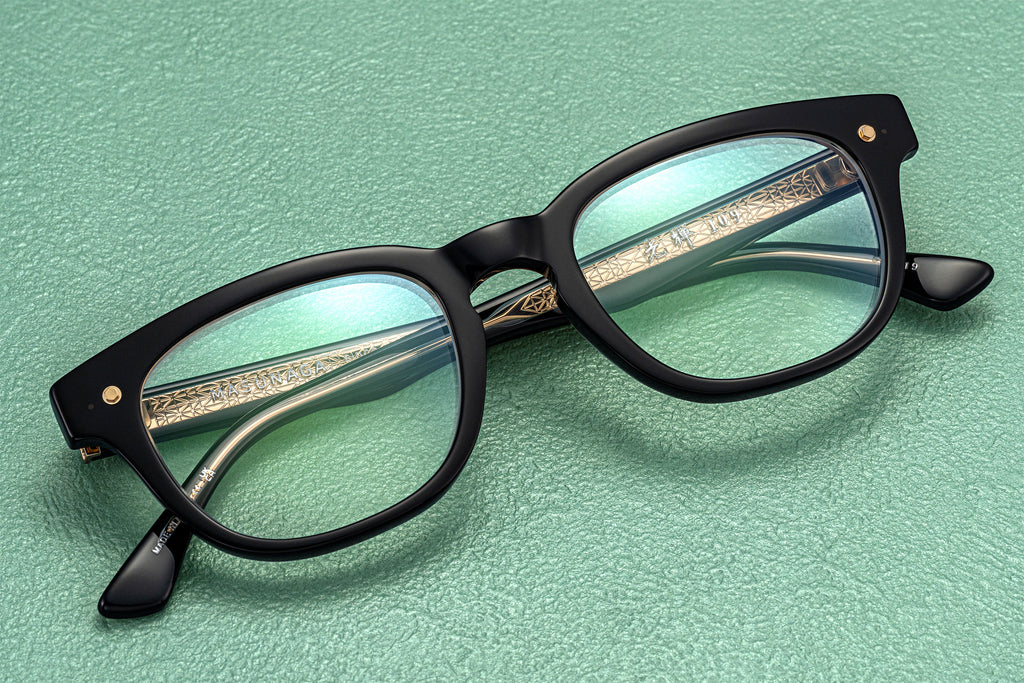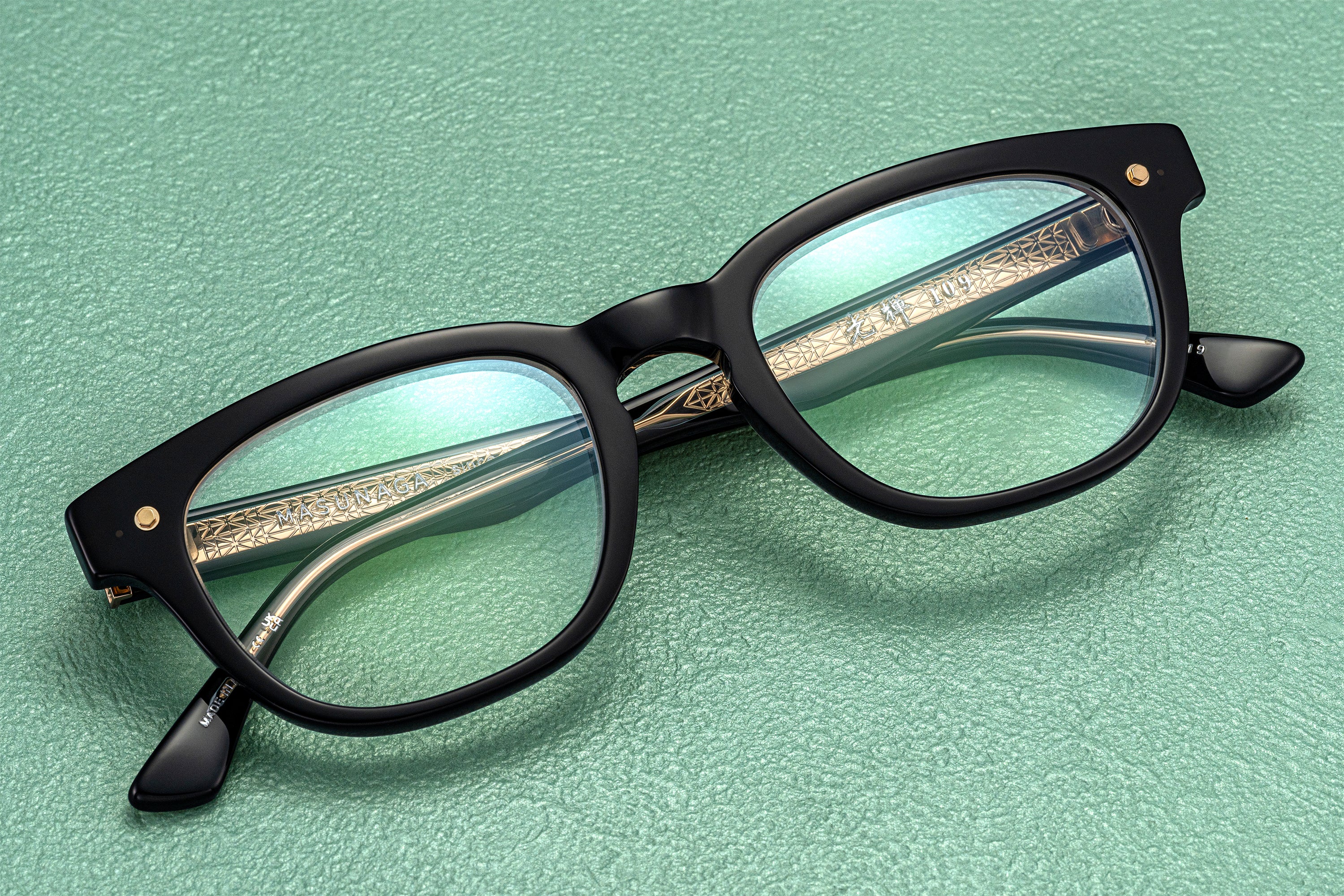 丸みを帯びたウェリントンシェイプの光輝109カジュアルなシーンからフォーマルなシーンまで幅広く寄り添います。アセテート越しに見えるフラクタル構造をモチーフにした幾何学模様が刻まれたテンプルコアや、ソリッドなワッシャーと六角ネジで構成されるアイコンなど随所にこだわりを散りばめています。#28 GRNはくすみがかったブルーグリーン。落ち着いたトーンの中にさりげない個性が宿り、普段使いにはもちろん、スタイリングのアクセントとしても美しく馴染みます。