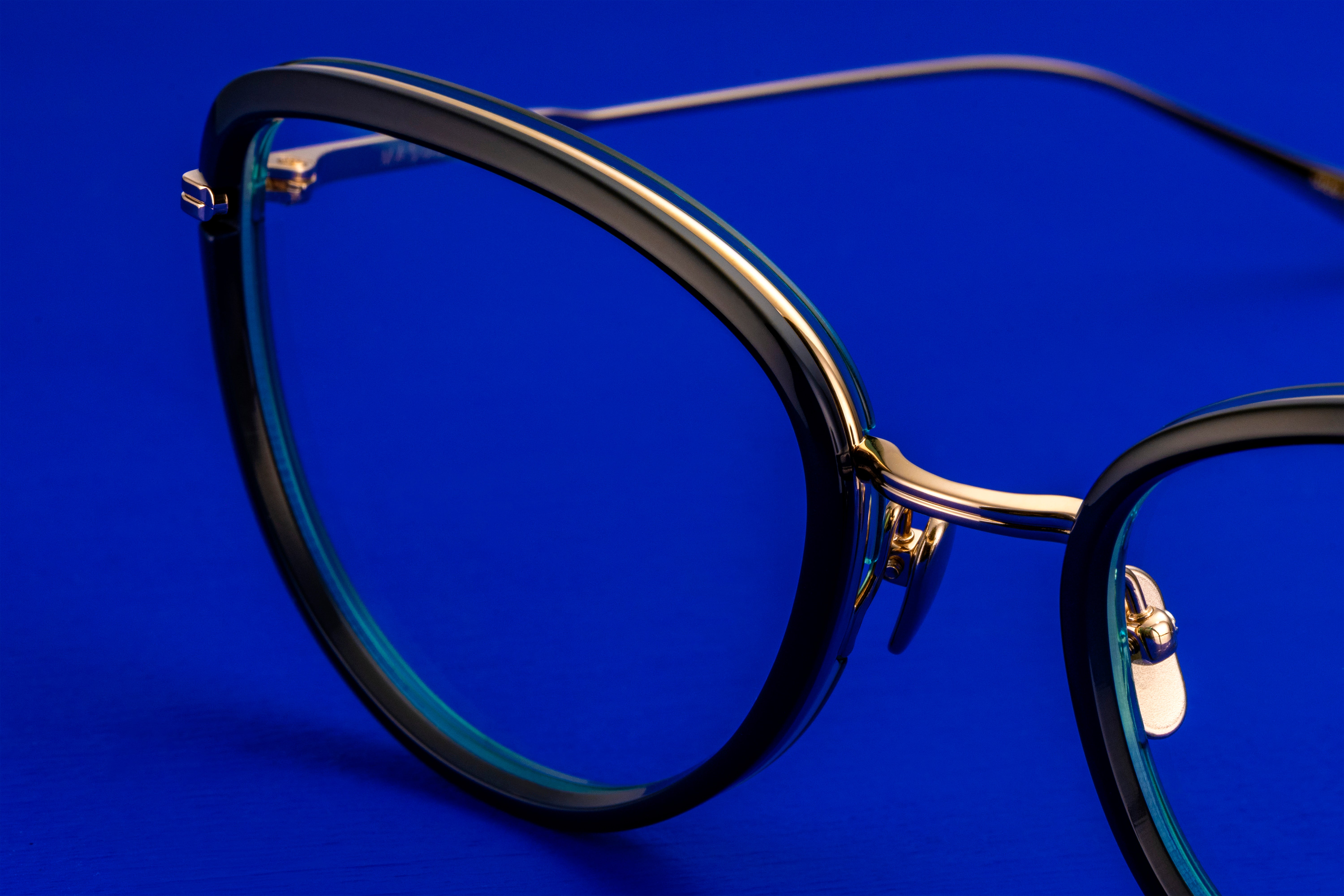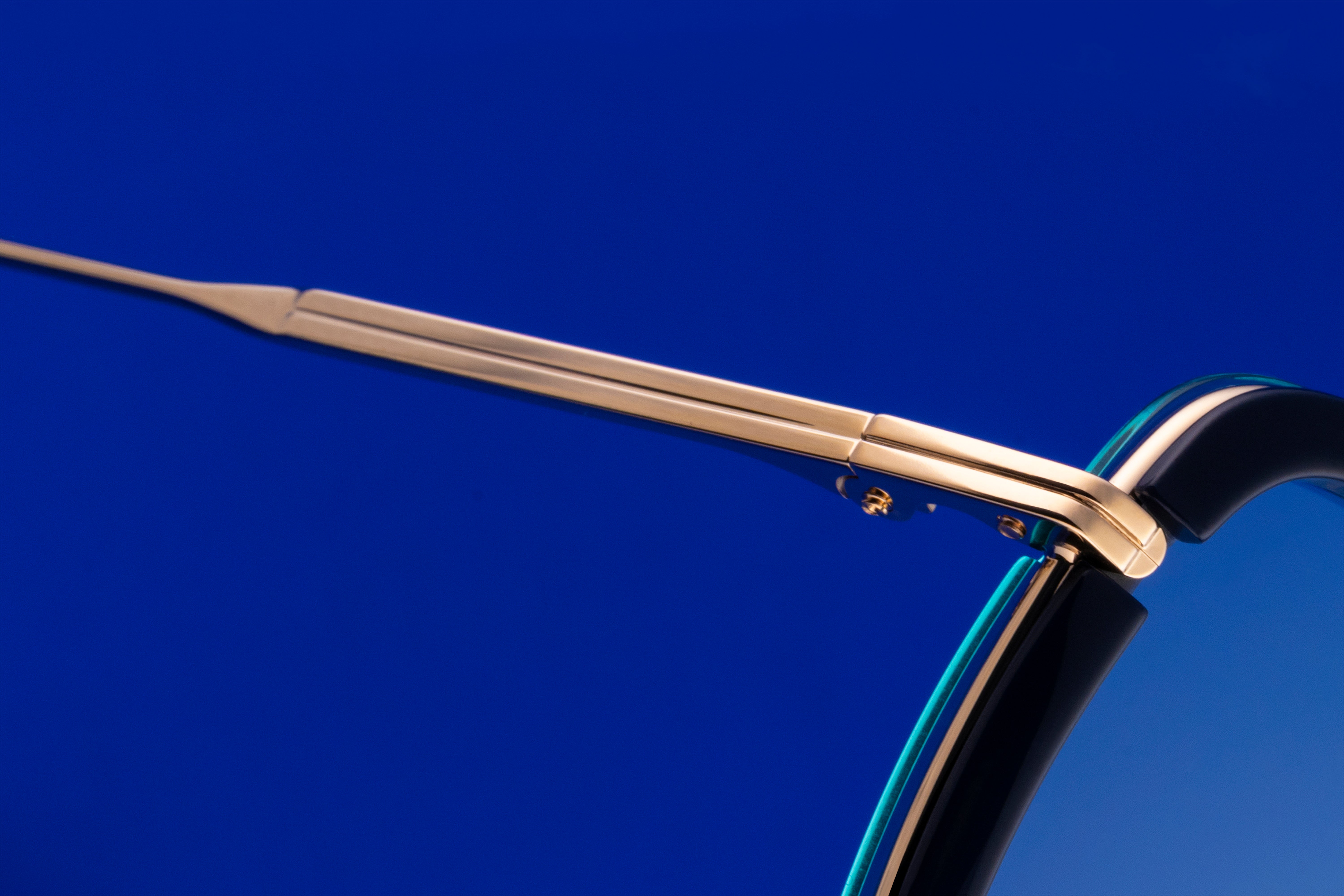 柔らかなキャットアイシェイプが女性らしさを引き立てるARIA。厚さ6mmのアセテートを贅沢に使用し、外側へ向かって傾斜をつけた立体的な造形によって、リム内側のシェイプが際立ちながらも重さを感じさせないエレガントな仕上がりです。 #35 BLUE/Gold は、ネイビー・ゴールド・クリアターコイズブルーの三層が織りなす高級感あふれるカラーリング。立体感と透明感が共存する、上品で華やかな一本に仕上がっています。