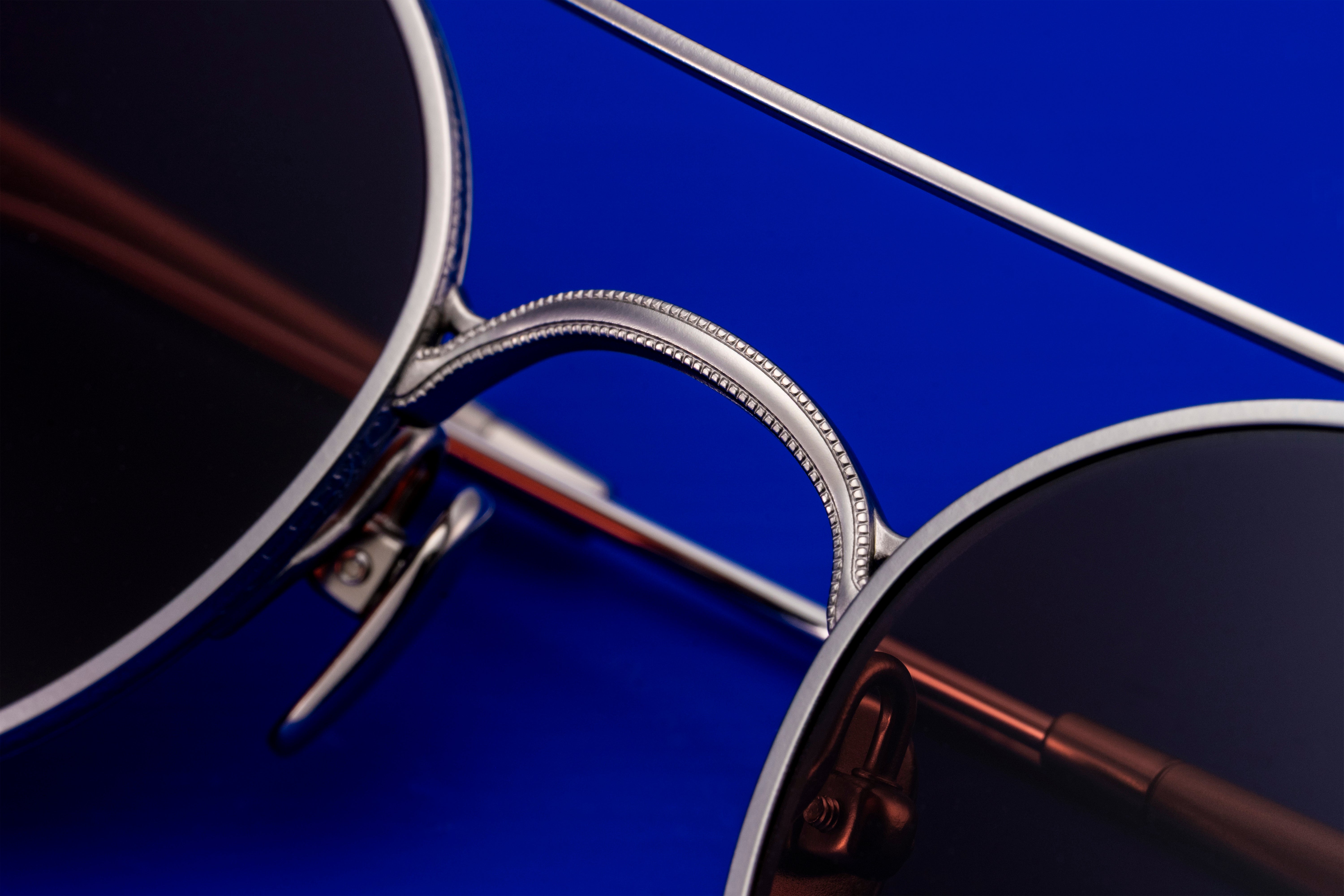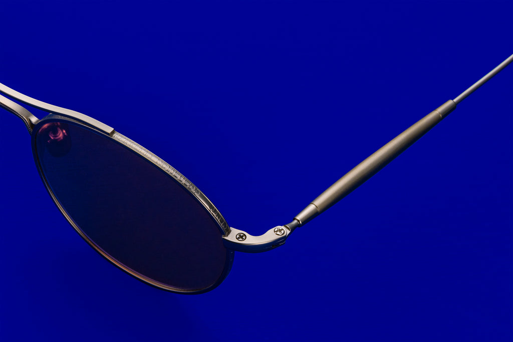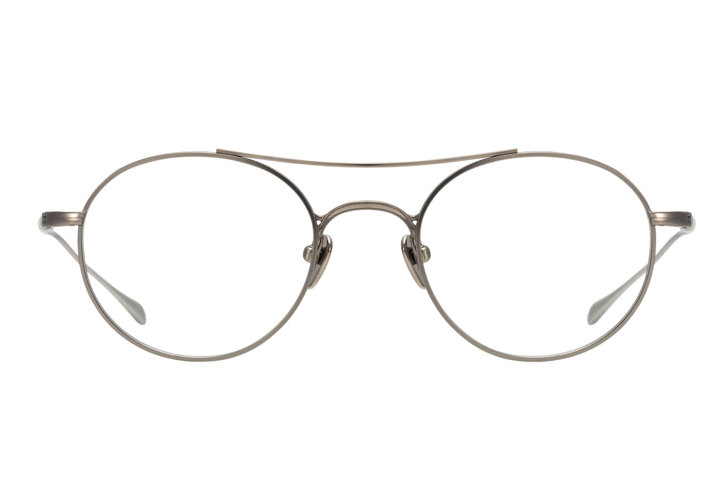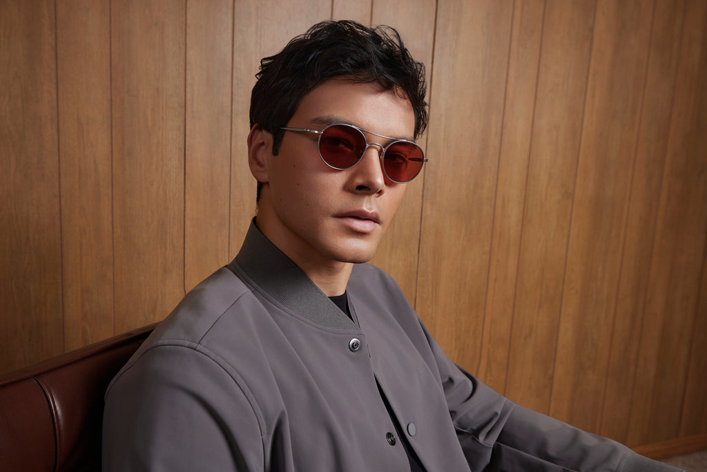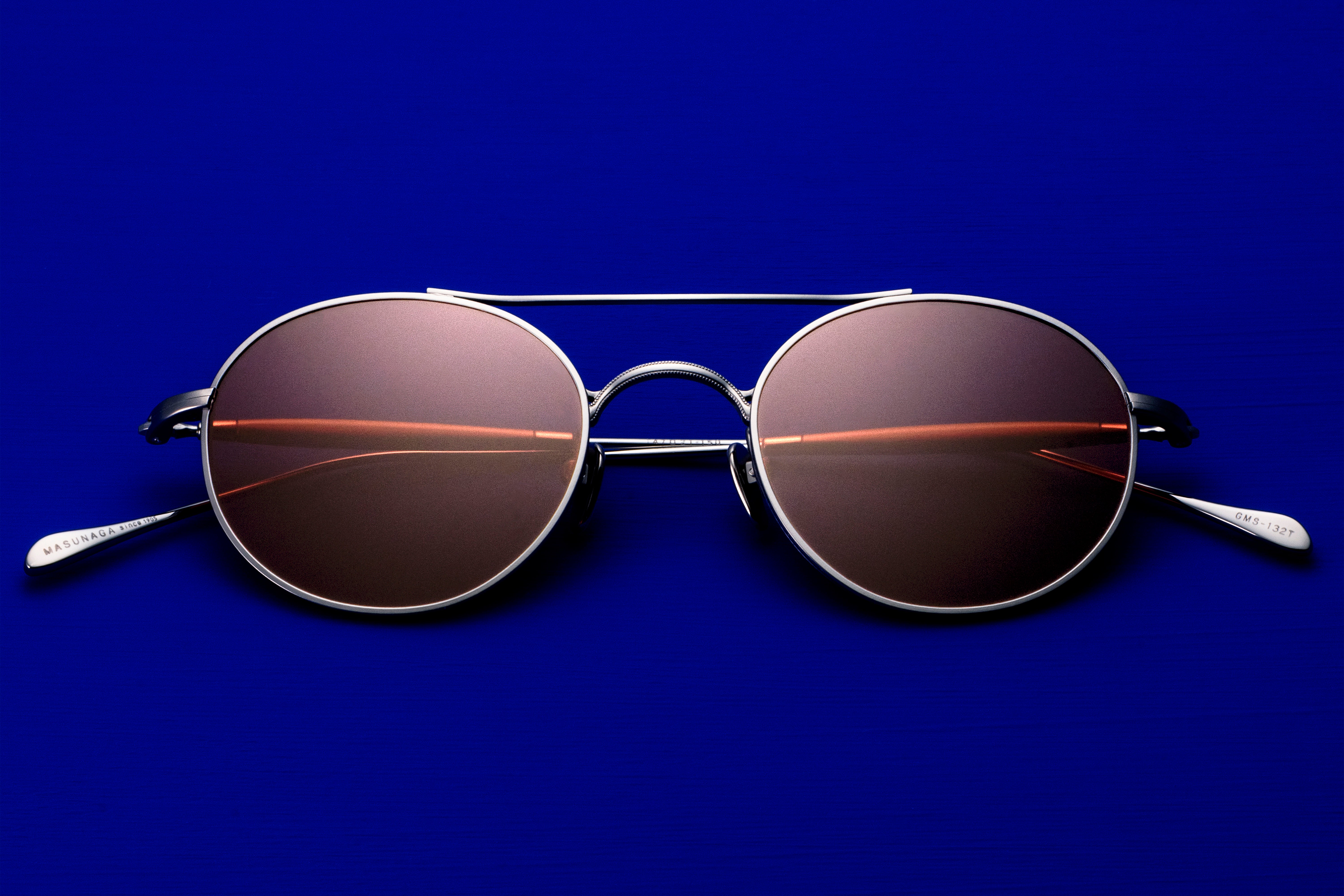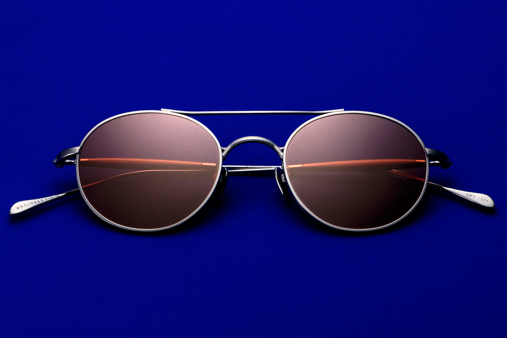 GMS-132Tはタイムレスな小ぶりのラウンドツーブリッジ。スタイル次第でクラシックにもキュートにも表情を変える万能なモデルです。ミル打ち風加工を施し、リムとの設置面が二手に分かれたユニークなデザインのブリッジはMASUNAGAのアーカイブをデザインソースとしたこだわりの構造。本モデルはサングラス仕様も展開しています。#S34 Greyは、加工方法の違いによる質感と濃淡の変化を加えることで、奥行きのある表情を演出。バーガンディのレンズを合わせることで、大人の雰囲気漂う仕上がりになりました。