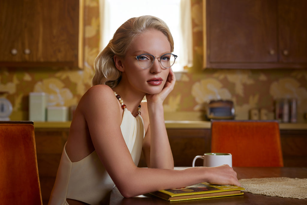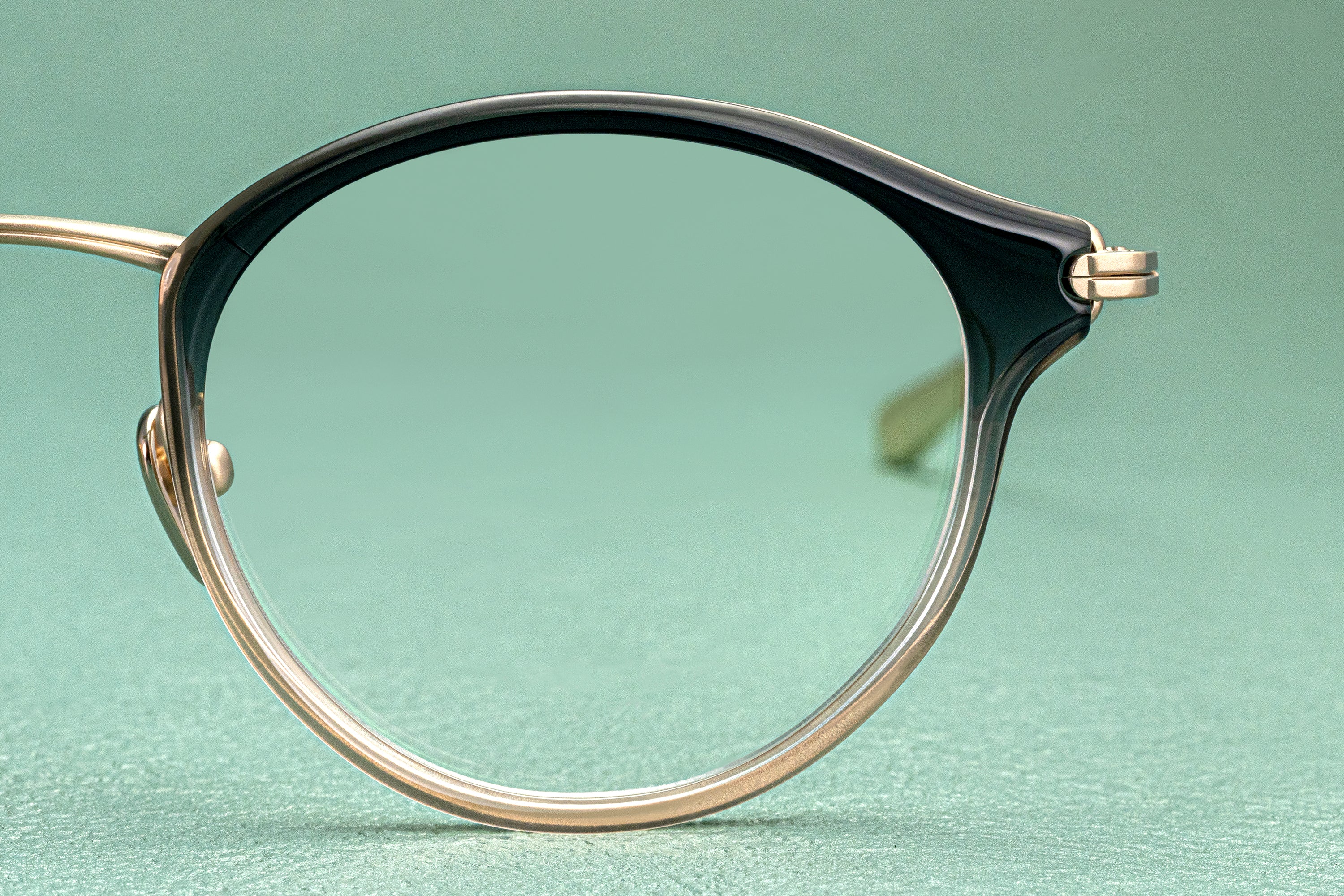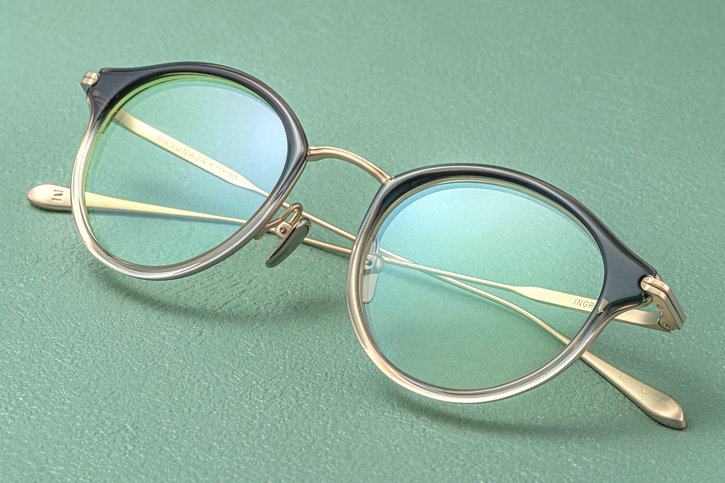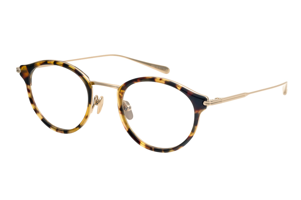 優美なメタルとスリムな印象のプラが織りなす上品なコンビネーションフレーム。アイコニックなボストンシェイプのプラリムは独自のカッティングで軽快な印象に。#38 MOSS/GPはグレーのグラデーション生地を採用。重すぎないカラーリングで肌馴染みがよく、ヨロイ部のゴールドがアクセントかつ全体を引き締めます。