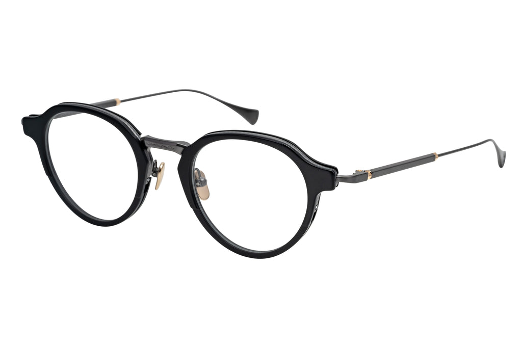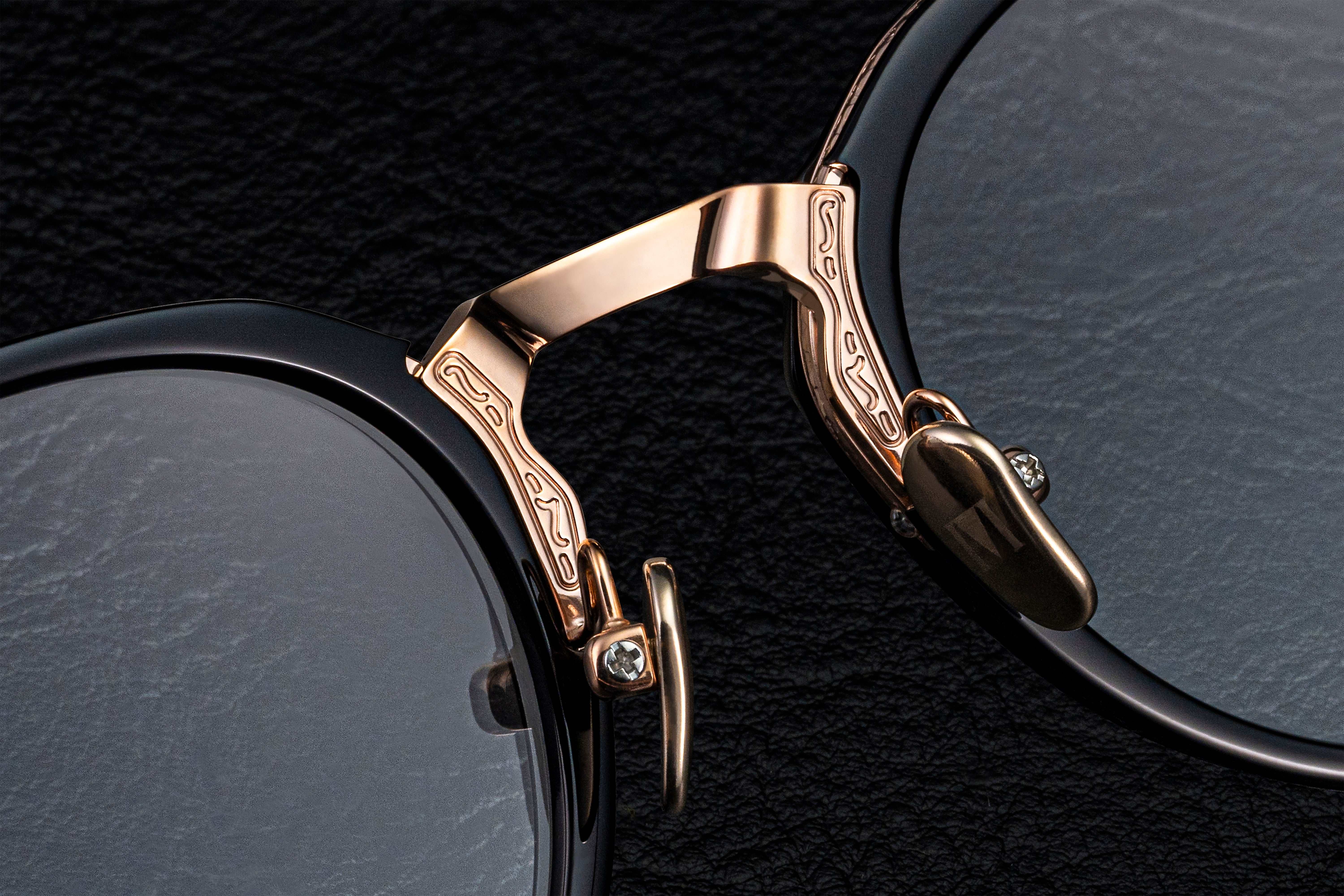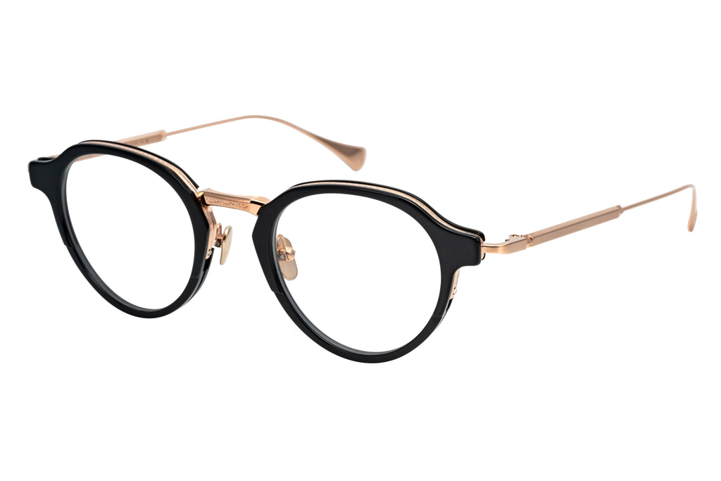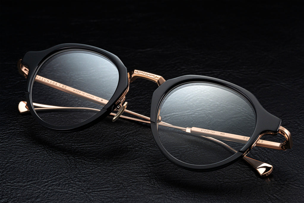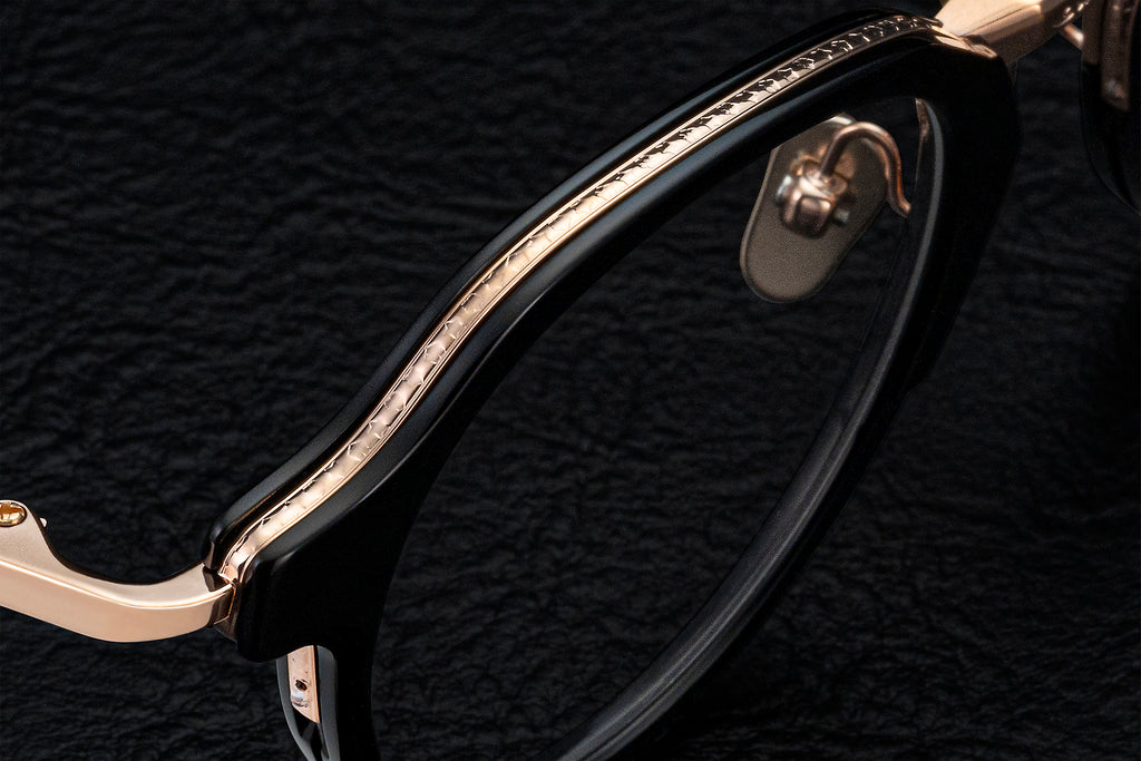 厚さ5mmのアセテートに独自のカットを施すことでブロータイプのような表情を見せるSERPENS。上品なクラウンパントシェイプと洗練されたメタルブリッジの組み合わせで掛けやすくも気品高い印象に。#49 BK/PKG はブラック生地とピンクゴールドの組み合わせ。それぞれのパーツの濃淡と艶感の切り替えが調和することで奥行きと可憐さを感じられるカラーリングです。