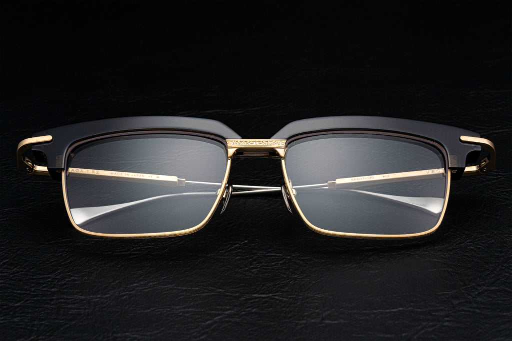 タフなブロー、スレンダーなリムとのコントラストが独創的なフォルムを生み出す。VESTAの最大の魅力である肉厚なブローは8ミリ厚のプラ生地を贅沢に使用。ブリッジ部は一体型のブローをアラベスク模様が施されたメタルパーツでサンドすることにより視覚的な美しさに加え、優れた堅牢性も備えます。オプティカル、サングラスの2タイプで展開。多彩なスタイルを楽しめます。